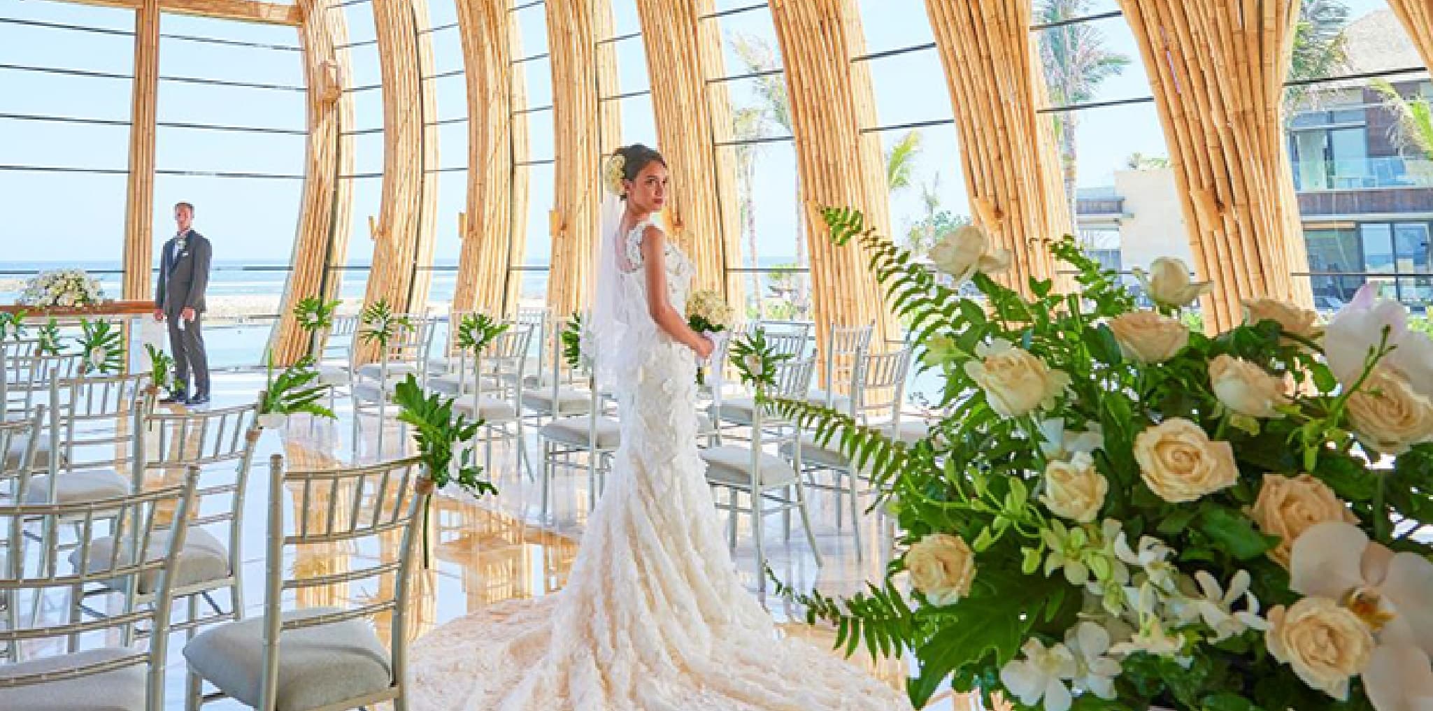インド洋を一望するクリフにそびえ立つ、バリ屈指のラグジュアリーリゾートでの撮影。インドネシアの伝統建築とモダンが融合した壮麗な空間は、一歩足を踏み入れた瞬間から別世界へ誘います。海に浮かぶようなガラス張りのチャペルや、精巧な彫刻が施された回廊。五感を満たす至高のホスピタリティに身を委ね、お二人のためのリゾートフォトをお楽しみください。