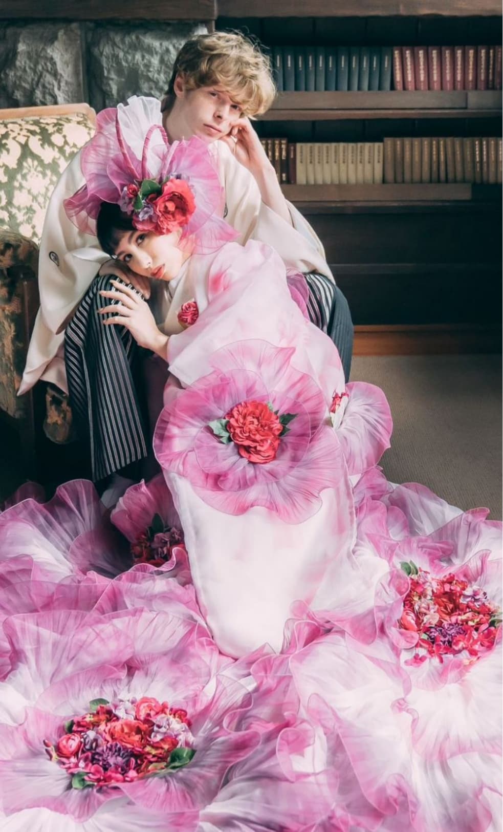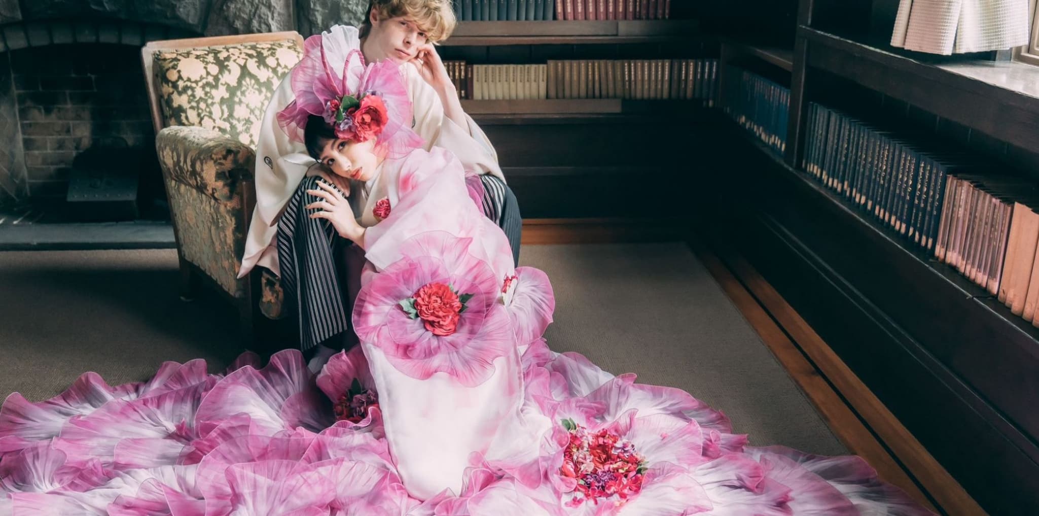 侯爵邸ならではの凛とした格式が漂う、日本建築の美しさが息づくロケーションです。畳の和室では、正座での厳かなシーンや、床の間を背景にした品格あるポートレートが撮影できます。縁側に腰掛けて庭園を眺める時間や、障子越しのやわらかな光に包まれる瞬間も、心落ち着く一枚に。日本庭園では四季の移ろいを感じながら、日傘を添えた情緒あるカットや、石灯籠が並ぶ小道での撮影も楽しめます。和装の魅力を上品に、そして美しく残せる特別な場所です。