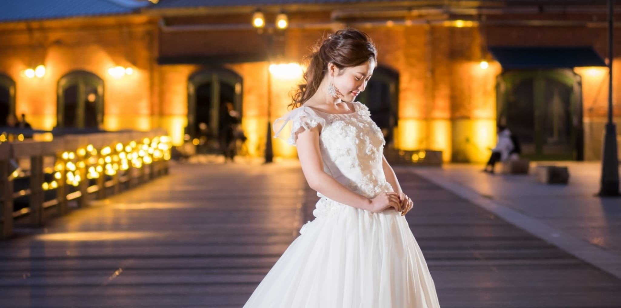 洋館が並ぶ旧居留地のクラシカルな街並みから、海風を感じるハーバーランドの夜景まで。神戸は、歩くたびに表情を変えるフォトジェニックな港町です。異国情緒あふれるモダンな通りはウェディングドレスとの相性が抜群で、まるでパリやロンドンの街角で撮影しているかのような洗練された一枚に。ナイト撮影では、メリケンパークの輝きを背景に大人なロマンティックを演出。都会的でお洒落、そしてどこか懐かしい。そんな贅沢な欲張りを叶えてくれるのが、神戸の魔法です。