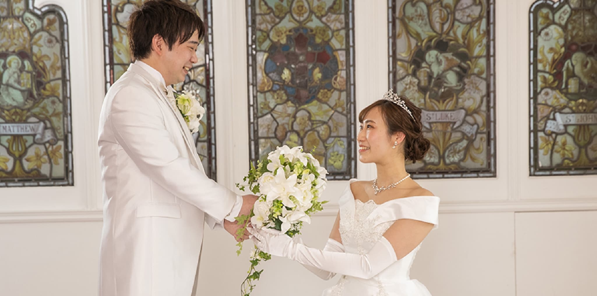 ・挙式用途は異なるタイプのウェディングドレスとカラードレスでご撮影頂きました。撮影開始時は少し緊張気味でしたが、お二人で向かい合ってのショット等は特に素敵な笑顔で、拝見しているだけで幸せを分けて頂けました。